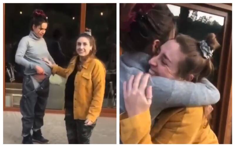 "¿Quieres ser mi madrina?", escribió Juanita Ringeling sobre su vientre. La mujer la abrazó de inmediato y se emocionó. "¿Eso es un sí?", le preguntó la actriz, y ella le aclaró que sí. Todos alrededor aplaudieron tras el suceso.