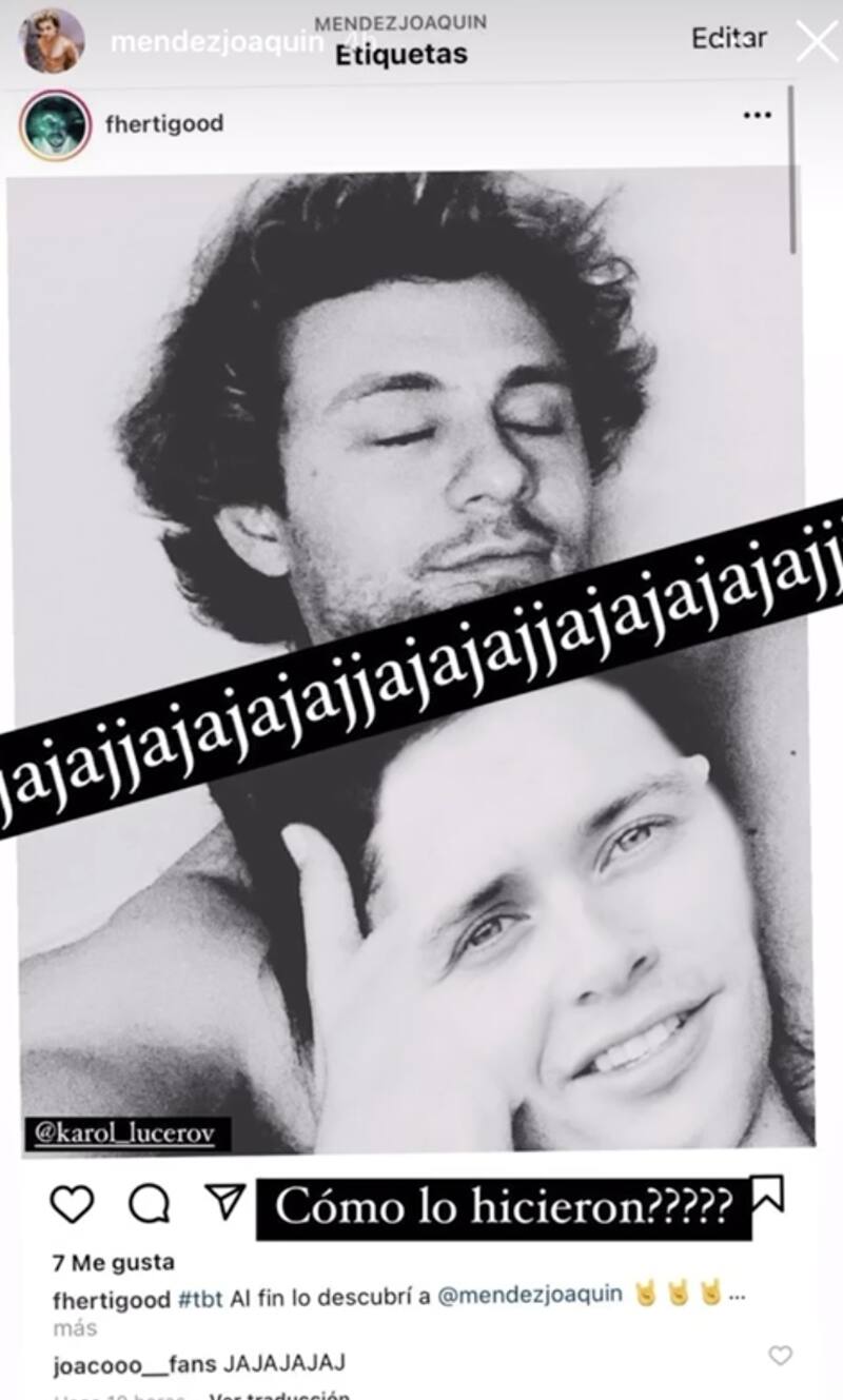 Horas después, Joaquín Méndez compartió en sus historias de Instagram dos fotografías editadas por sus seguidores, donde revelaban la supuesta identidad de su polola.