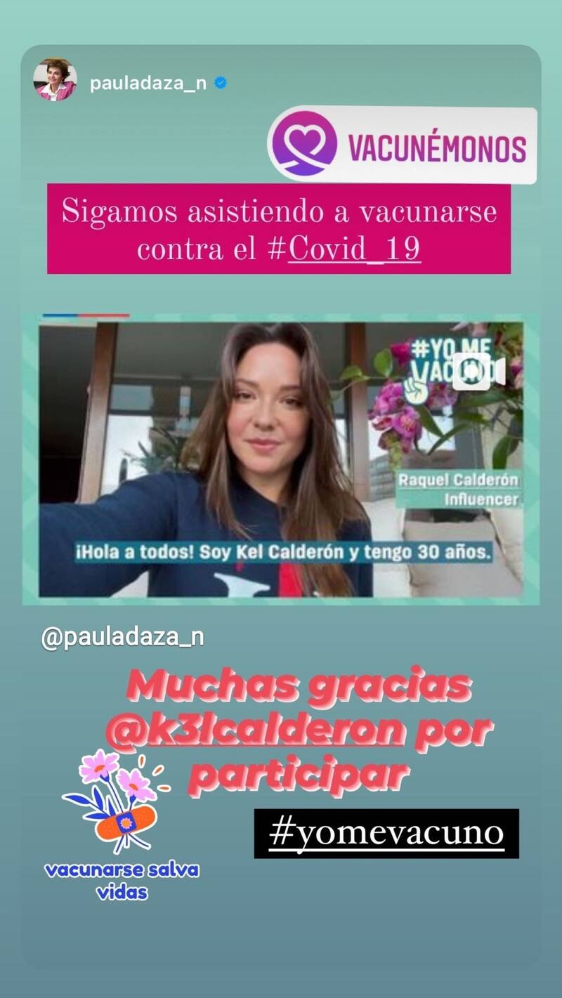 "Sigamos asistiendo a vacunarse contra el Covid-19. Michas gracias Kel Calderón por participar", escribió en su cuenta de Instagram la subsecretaria de Salud Pública, Paula Daza, en relación con la ayuda que le propinó la futura abogada.