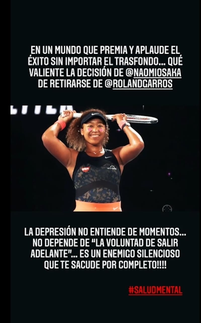 El conductor de "Nexo ESPN" publicó una historia, señalando que "en un mundo que premia y aplaude el éxito sin importar el trasfondo, qué valiente la decisión de Naomi Osaka de retirarse de Roland Garros".