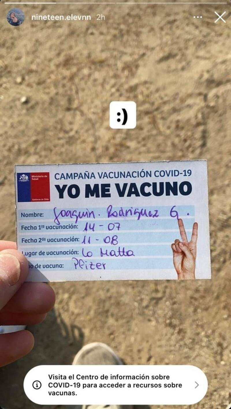 Nineteen Elevnn publicó una imagen en sus historias de Instagram de su carnet de vacunación, junto a una carita feliz.