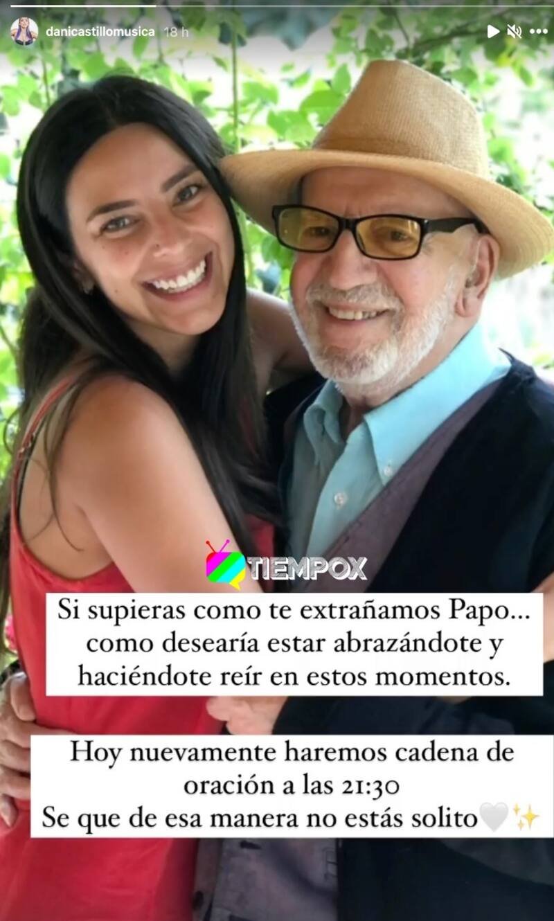 "Lamentablemente también cayó mi mamá. Tiene 95 años y ha sido durísimo estar lejos de él, no acompañarlo en este proceso, pero les agradezco a todos por estar presentes en esta cadena de oración", destacó Daniela Castillo.