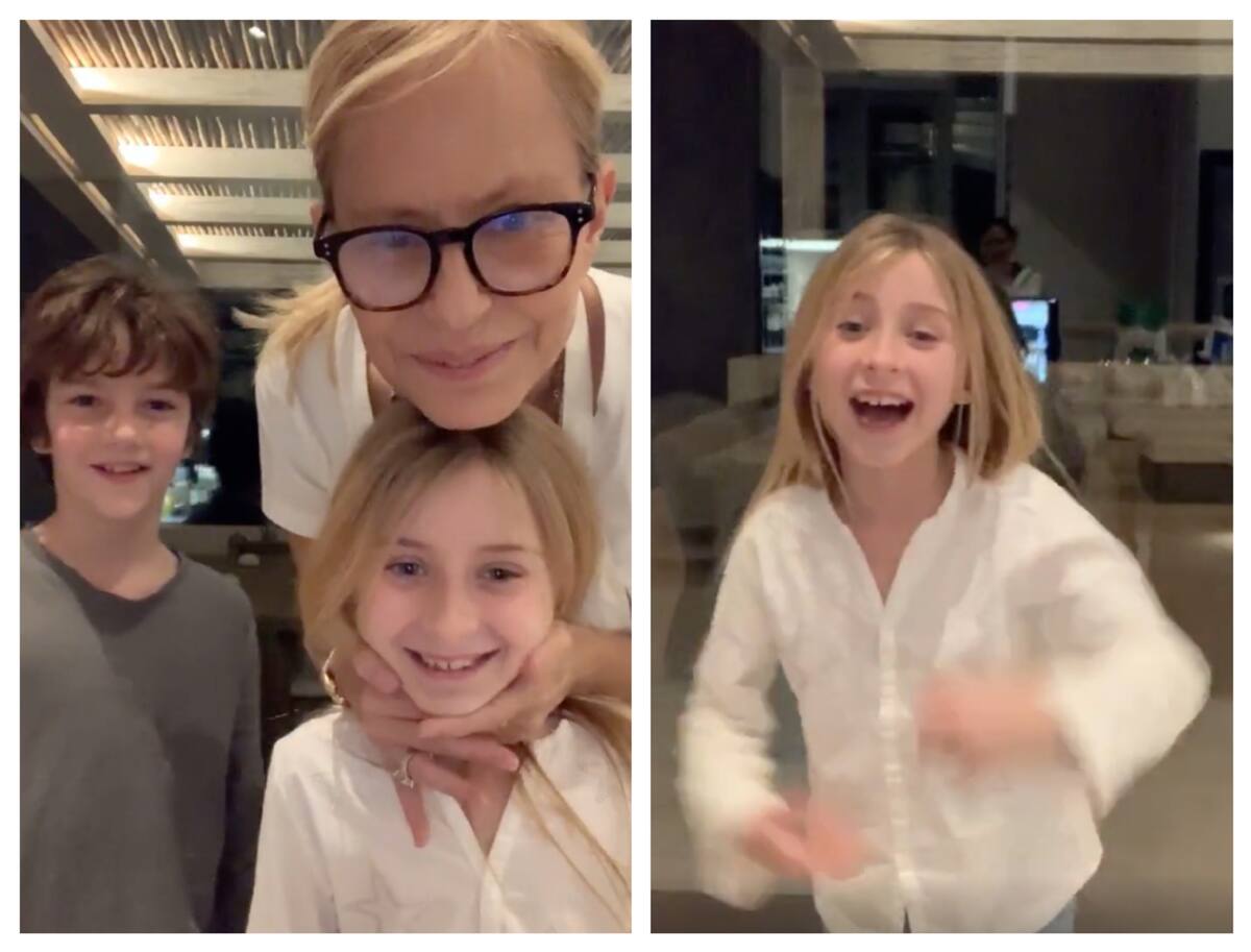 "¡Llegaron! ¡Llegaron mis niños!", dijo, emocionada, la Miss Universo de 1987 en la transmisión en vivo de Instagram, en tanto los dos pequeños saludaban a la cámara y se reían sin parar.
