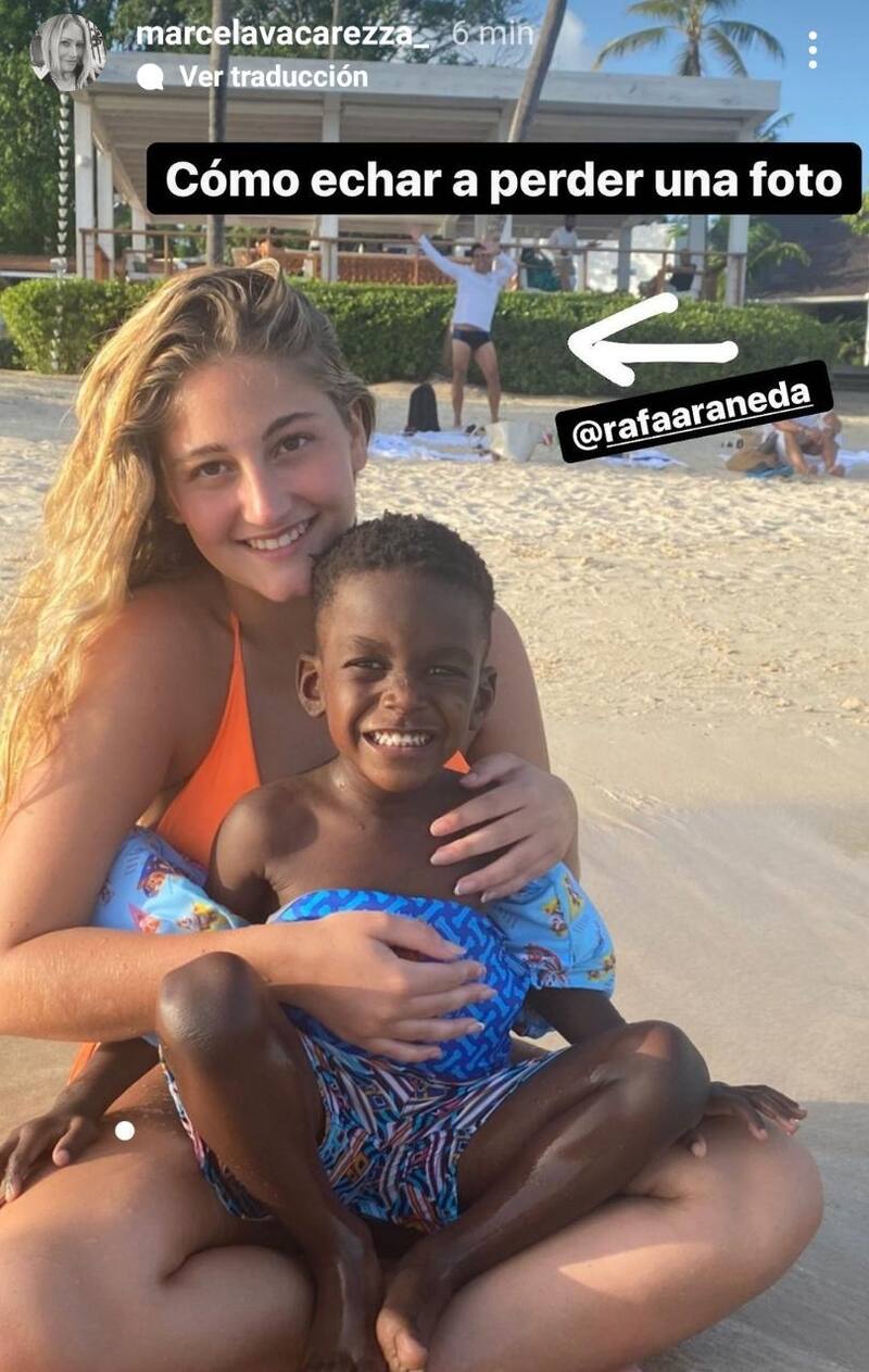 "Cómo echar a perder una foto", agregó Marcela Vacarezza en la foto de su hijo Benjamín y su hija Florencia, mientras que de fondo aparece Rafael Araneda realizando un baile moviendo sus manos.