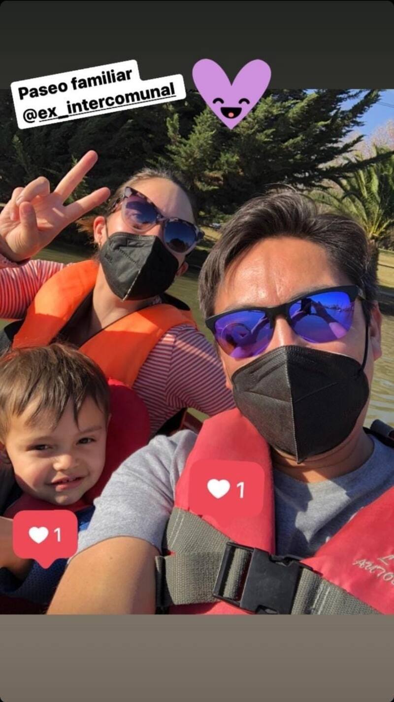"Paseo familiar", escribió brevemente Maly Jorquiera mientras paseaba por el parque intercomunal de La Reina, aparentemente en un paseo en bote debido a los chalecos salvavidas que está utilizando la pareja.