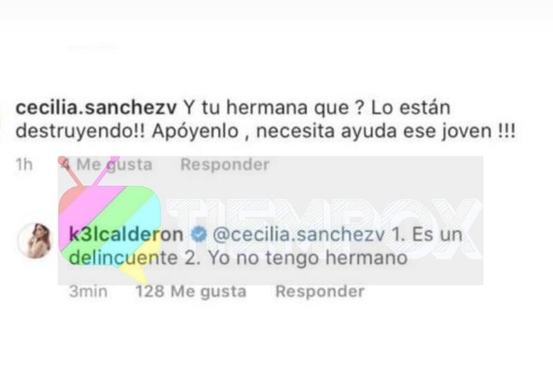 Tras lo ocurrido, la hija de Raquel Argandoña compartió una fotografía con Calderón padre en su cuenta de Instagram, dándole su apoyo. "Estoy y estaré a tu lado en cada paso del camino, pongo el 100% de mi fuerza y capacidades a tu disposición. Seré tu mejor guerrera. Te amo", escribió. Pero dentro de las respuestas de sus seguidores destacó la de un usuario, que le preguntó: "¿Y tu hermano qué? ¡Lo están destruyendo! Apóyenlo, necesita ayuda ese joven". Casi de inmediato, la futura abogada respondió: "1. Es un delincuente. 2. Yo no tengo hermano".