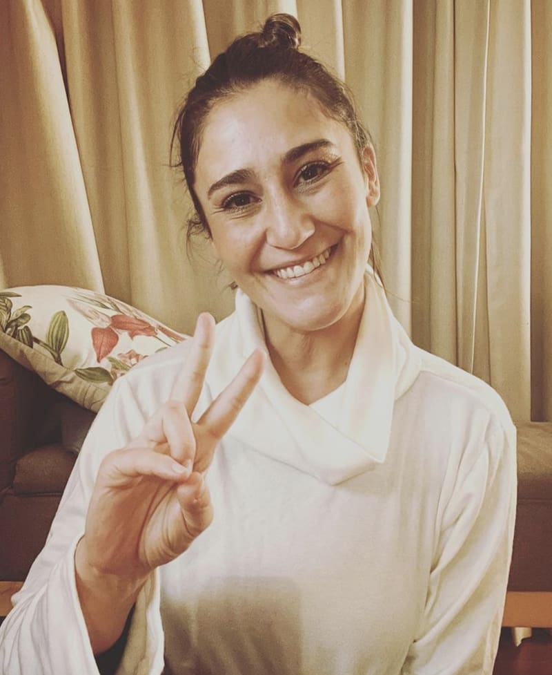 "Con mi cara de poto y ojerosa quiero agradecerles a todos por su buena onda y efectivamente estoy embarazada. Tengo tres meses, asi que estamos muy, pero muy contentos, y les voy a ir informando", señaló la comediante.