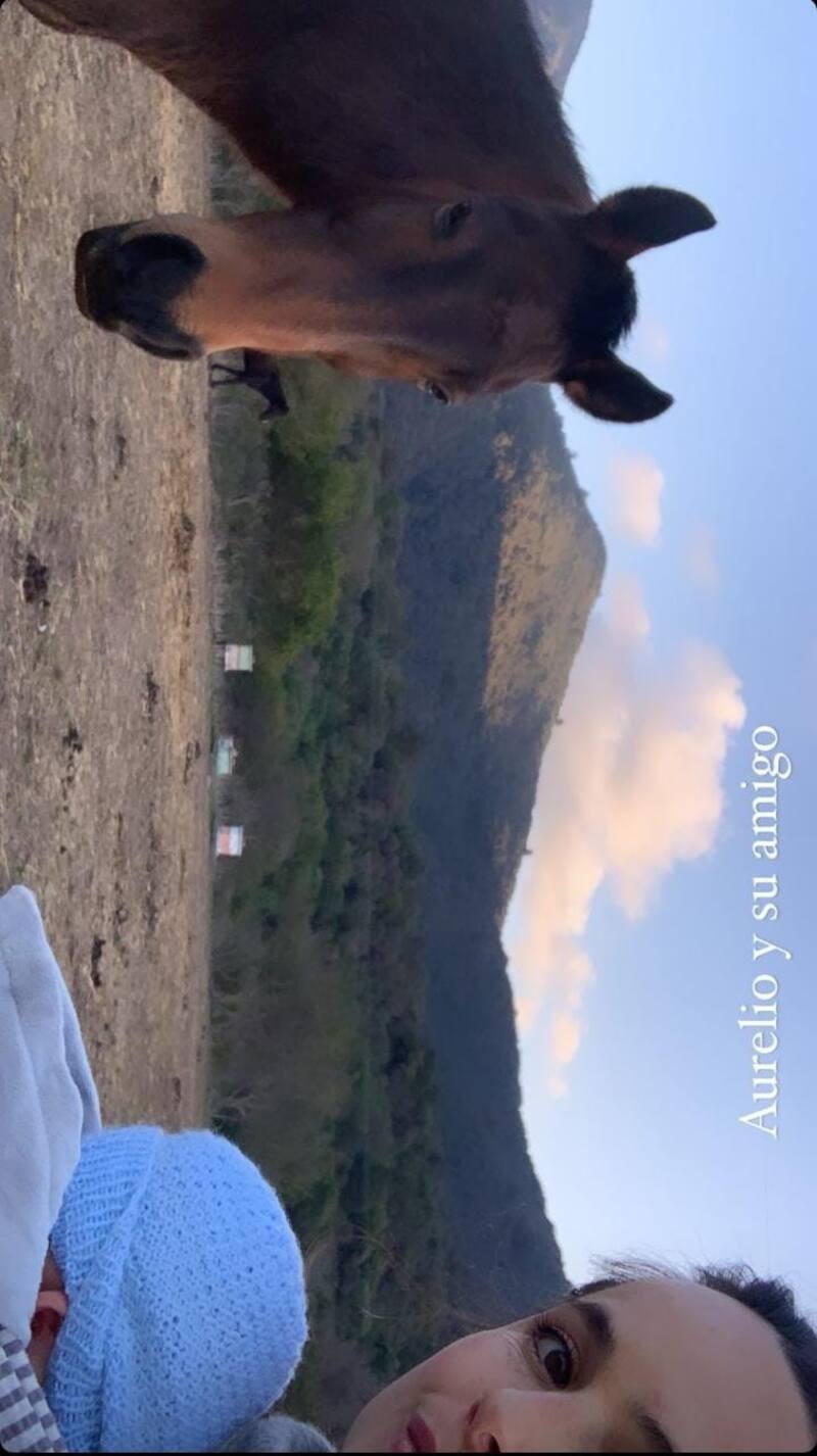 Finalmente, para cerrar, la intérprete mostró a un caballo cerca de Aurelio, mostrando lo importante que es para los padres el contacto con la naturaleza en la crianza del menor.