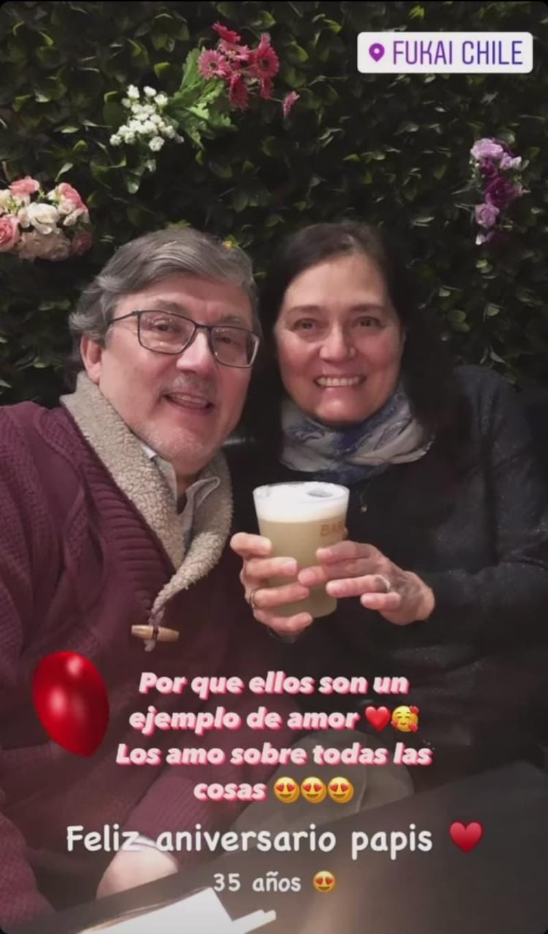 "Porque ellos son un ejemplo de amor. Los amo sobre todas las cosas. Feliz aniversarios, papis. 35 años", señaló Magdalena Müller.