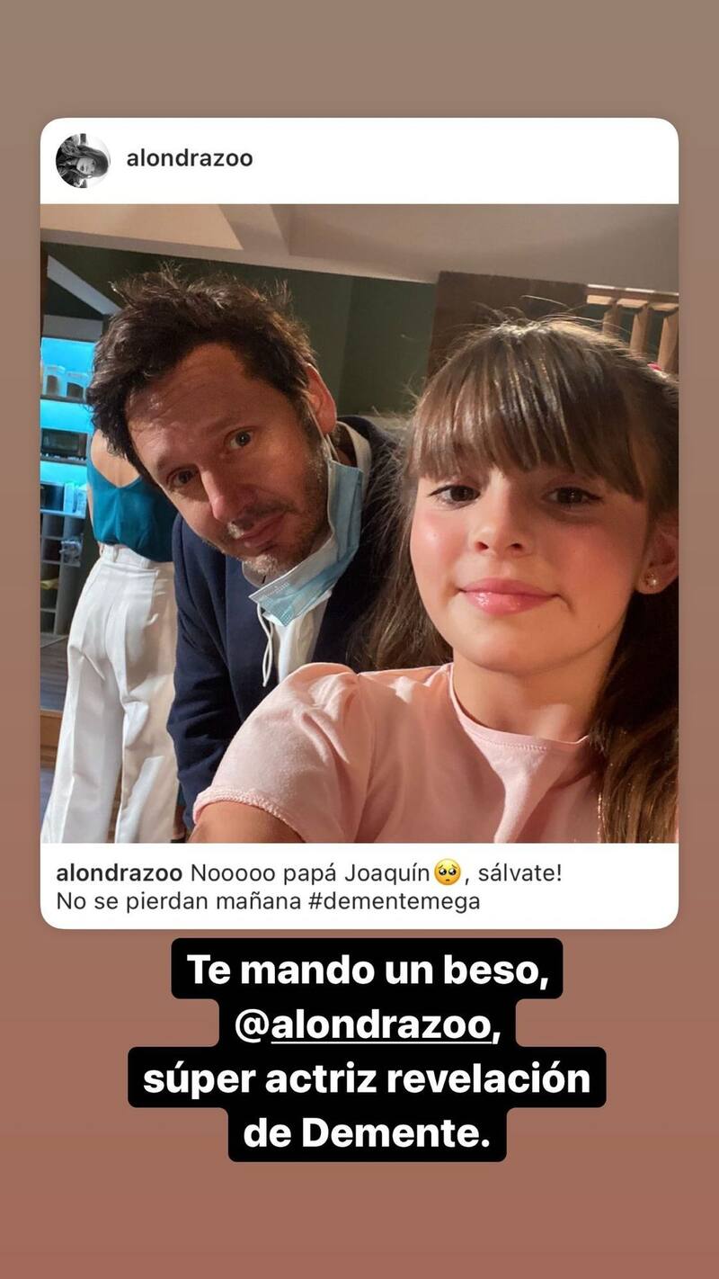 "Te mando un beso, Alondra. Súper actriz revelación de 'Demente'", escribió en su cuenta personal el protagonista de "El Bosque de Karadima", dejando en claro si opinión sobre el talento que tiene la menor.
