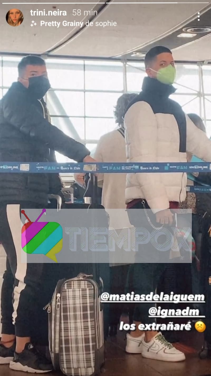 Pero esa no fue la única despedida, ya que también Trinidad Neira compartió en sus redes sociales el adiós de su pololo, Ignacio Dalaigue, quien estaba en compañía de su hermano. "Los extrañaré", señaló la hija de la presentadora de TV en sus historias de Instagram.