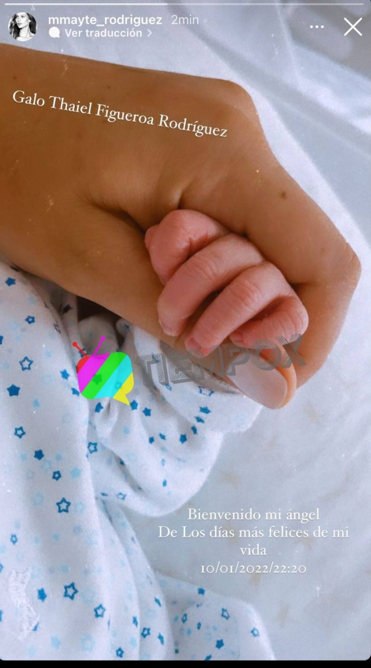 "Galo Thaiel Figueroa Rodríguez", escribió Mayte Rodríguez para presentarle a sus más de un millón de seguidores a su primogénito.