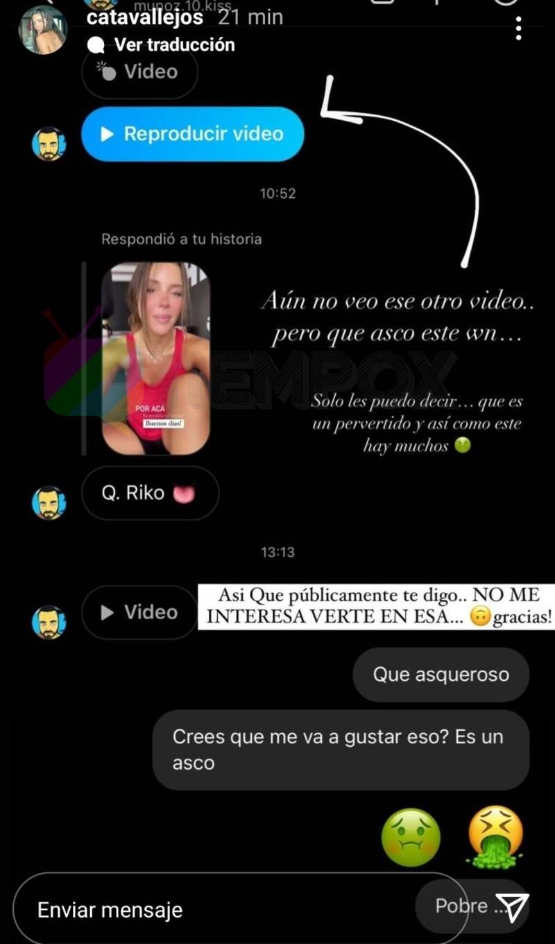 "Sólo les puedo decir que es un pervertido. Así como este hay muchos", escribió Cata Vallejos en las capturas de pantalla que compartió en sus redes sociales.