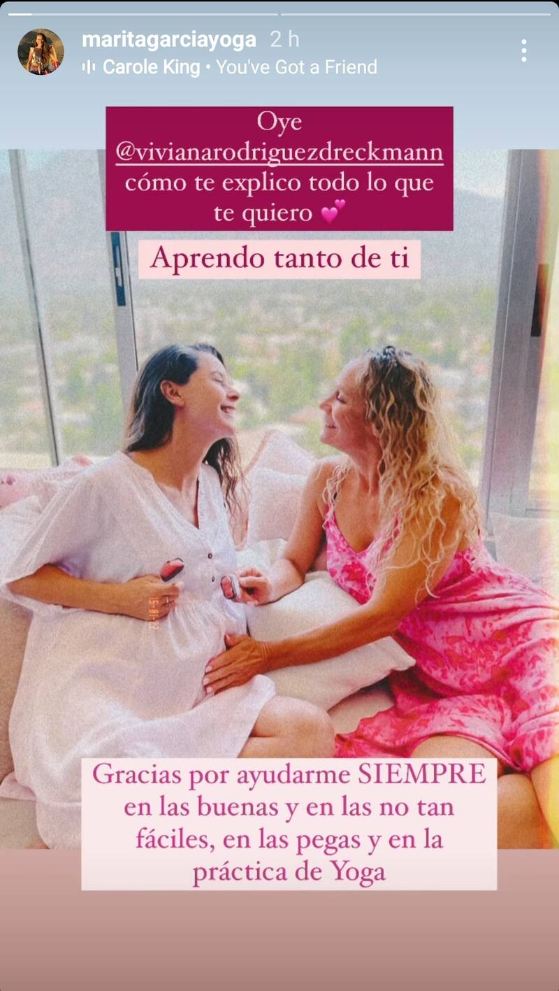 Luego compartió una historia posando con su colega, en donde expresó su amor y cariño. "Oye como te explico todo lo que te quiero. Aprendo de ti. Gracias por ayudarme siempre en las buenas, en las no tan fáciles, en las pegas, en las prácticas de yoga", expuso.