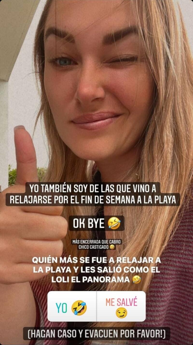 "Yo también soy una de las que vino a relajarse por el fin de semana a la playa. Más encerrado que cabro chico castigado", comentó en primera instancia para luego complementar si era única que hizo esto.