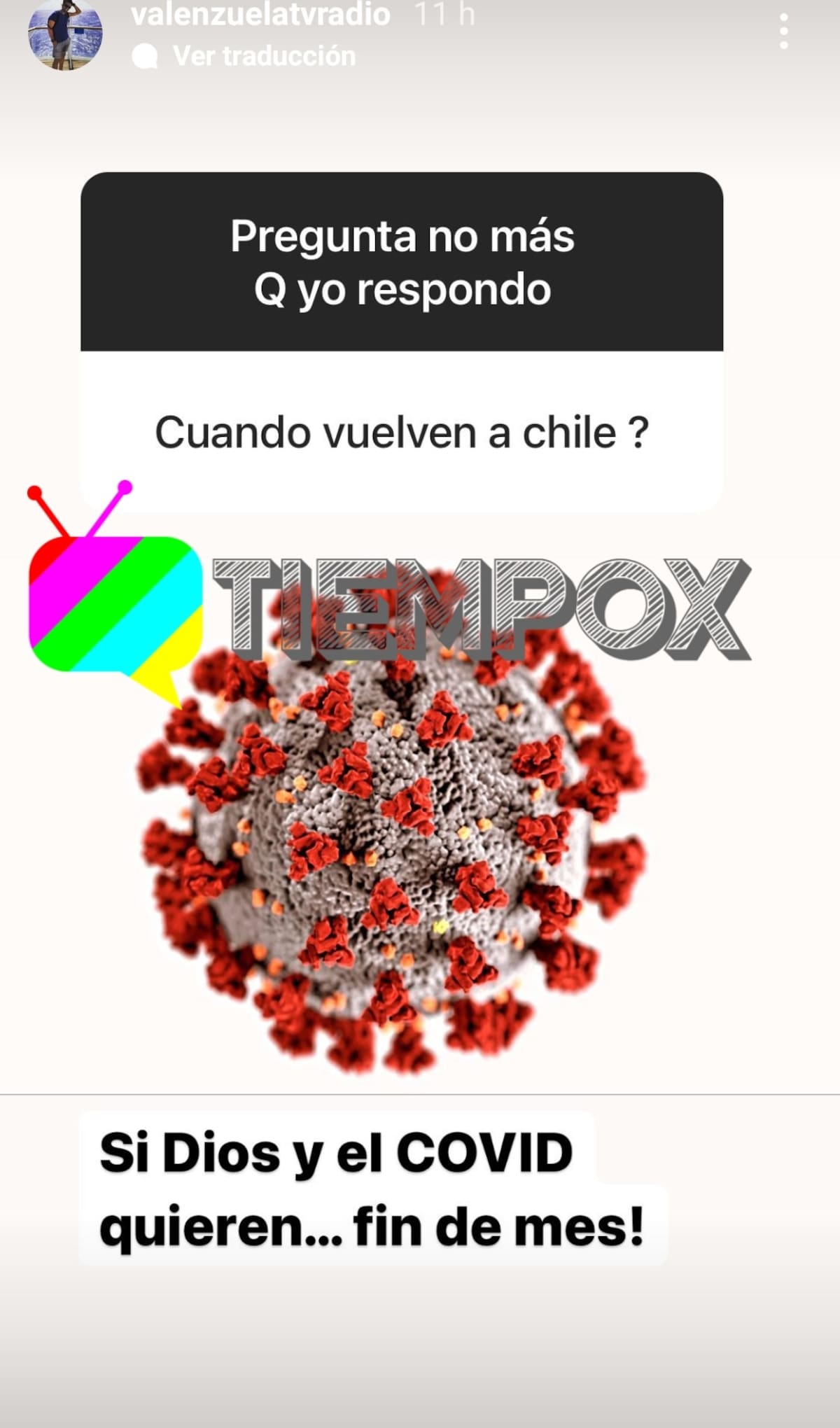 Pero las vacaciones no son eternas y el presentador de televisión ya tiene fecha de regreso a Santiago. Así lo dejó ver en una respuesta en la plataforma, en la cual comentó que volvería a pisar nuestro país a fin de mes: "Si Dios y el Covid quiere vuelvo a fin de mes", manifestó el famoso.