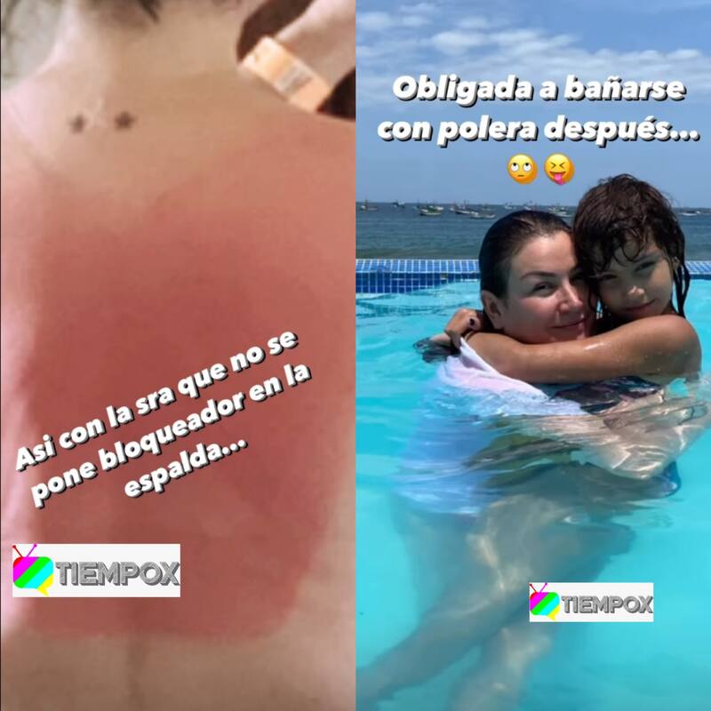 También la jurado de "The Covers", se vio expuesta a los rayos del sol, ya que ella también se quemó. La intérprete de "Kena" compartió a través de sus historias la gran quemadura que la obligó a usar polera para bañarse en la piscina junta a su pequeña Mila.