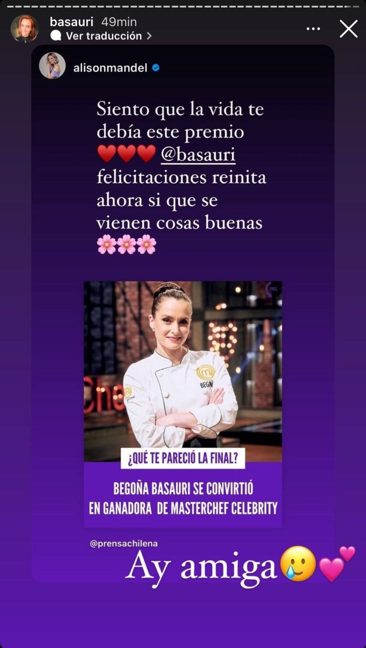 Alison Mandel se sumó a las felicitaciones a Begoña Basauri tras ganar "MasterChef Celebrity"