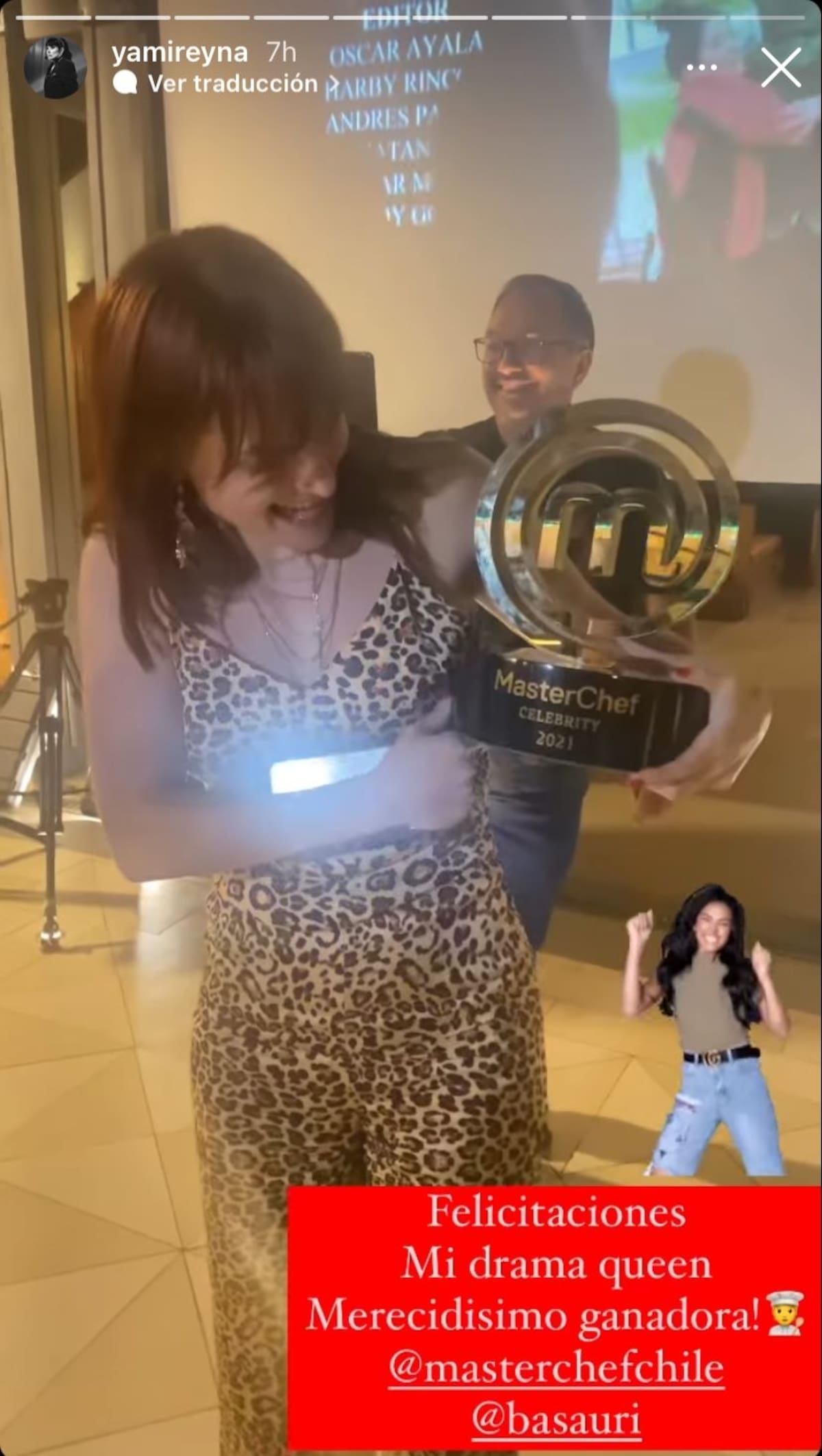 La comediante, en sus historias de Instagram, compartió una noticia de la victoria de la actriz en el espacio culinario de Canal 13, y le dedicó un emotivo mensaje.