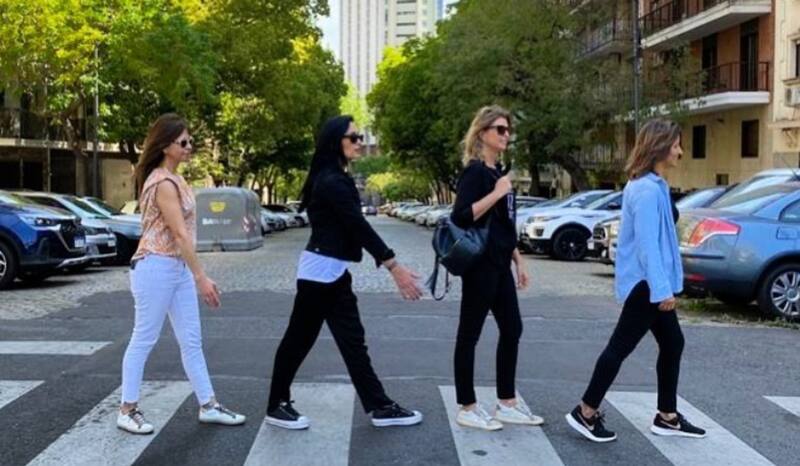 Durante la jornada, la comunicadora también se tomó unos momentos para compartir una fotografías en donde las cuatro amigas se encuentran cruzando una bella calle, en el paso de cebra, emulando así la icónica portada del disco "Abbey Road" de The Beatles".