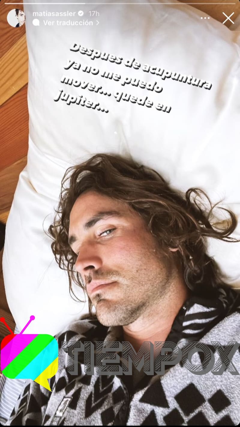 Sin embargo, ahora Matías Assler comentó que se hizo una sesión de acupuntura, por algunos problemas físico que lo aquejaban. "Ya no me puedo mover, quedé en Júpiter", expresó el intérprete, aludiendo a que quedó en una extrema condición de relajo tras el proceso.