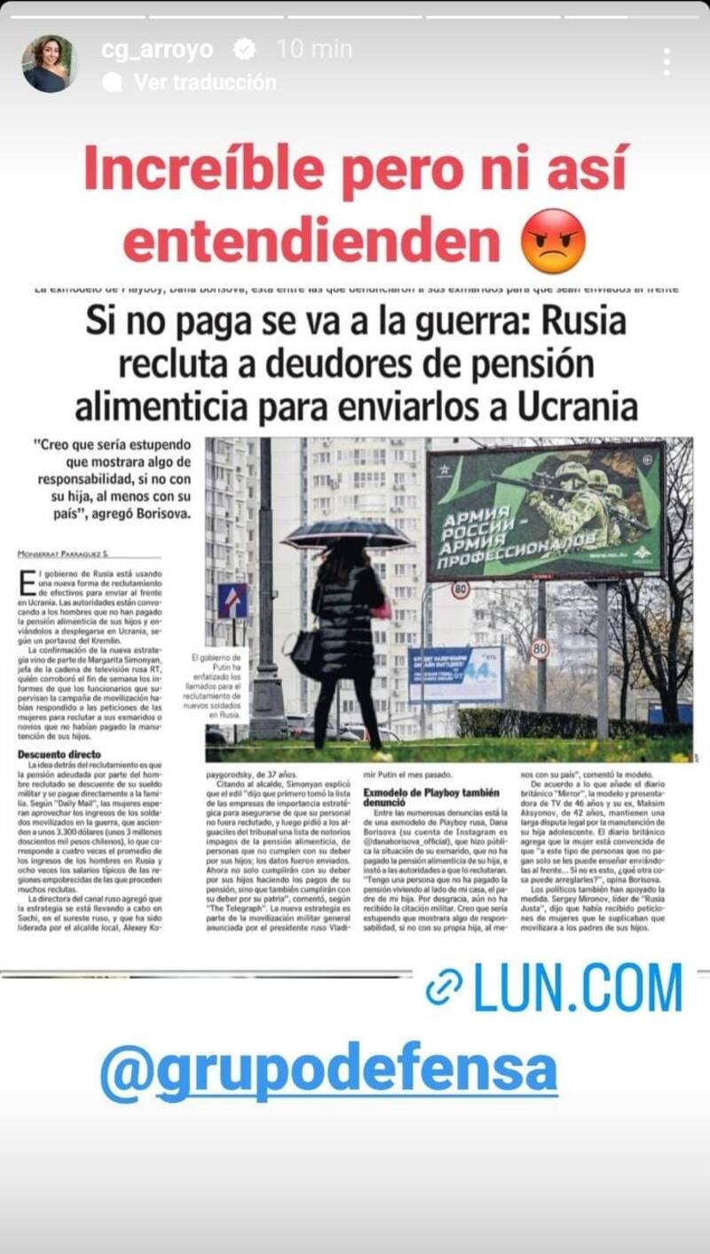 "Increíble pero ni así entienden", escribió Carmen Gloria Arroyo a raíz de una noticia que leyó sobre la decisión que tomó Rusia para enviar a la guerra a los padres que no pagan la pensión alimenticia.