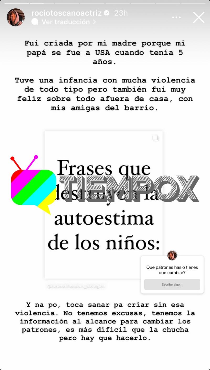 "Y nada, toca sanar para criar sin esa violencia. No tenemos excusas, tenemos la información al alcance para cambiar patrones, es más difícil que la chu..., pero hay que hacerlo", finalizó Rocío Toscano.