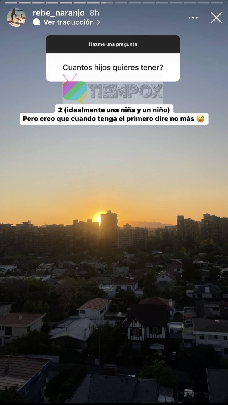Ante esto, Rebeca dijo: "Dos, idealmente una niña y un niño. Pero creo que cuando tenga el primero diré no más". Además, respondió preguntas sobre sus viajes, revelando datos para sus seguidores y también habló sobre su querida mascota, su perrita Pomerania, llamada Coca.