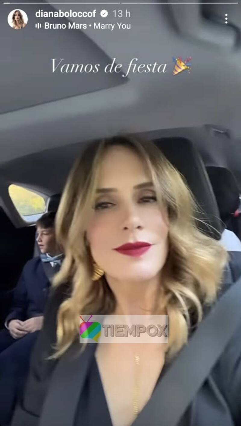 Diana Bolocco vistió un conjunto negro con un largo escote, acompañado de un blazer del mismo tono y accesorios dorados que resaltaban el look. Su pelo lo peinó con ondas y pintó sus labios color rojo. Sus hijos, Gracia Sánchez y Facundo Sánchez también lucieron muy elegantes para el festejo.