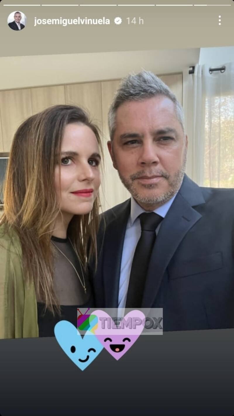 José Miguel Viñuela fue vestido con un terno de color negro, junto a una camisa color blanco y una corbata color totalmente negra. Asistió junto a su esposa, Constanza Lira, quién lució un outfit con transparencia en el pecho y lo acompañó de una camisa tipo blazer color verde musgo. El look lo acompañó de un peinado con pelo totalmente liso y maquillaje con labios rojos.