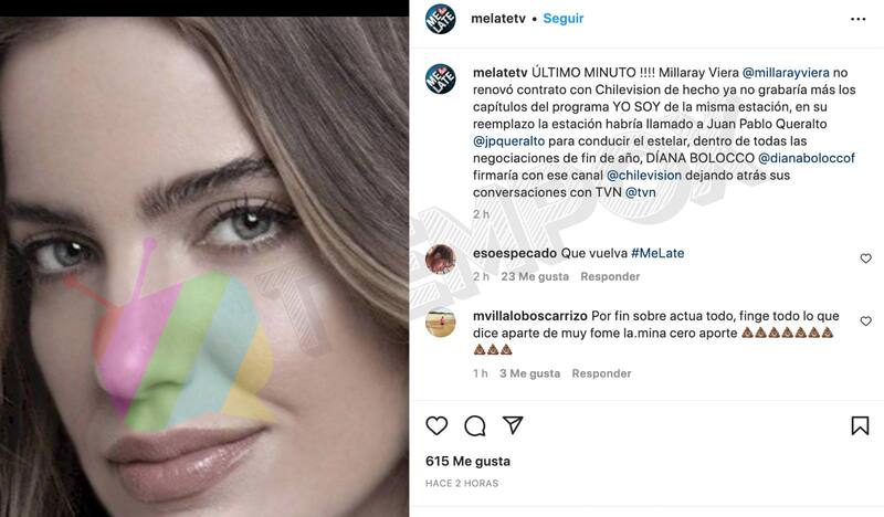 Así lo aseguraron en el Instagram oficial de "Me Late", donde revelaron que la señal de Machasa estaría cada vez más cerca de Bolocco. Esto, en medio de la sorpresiva renuncia de Millaray Viera.