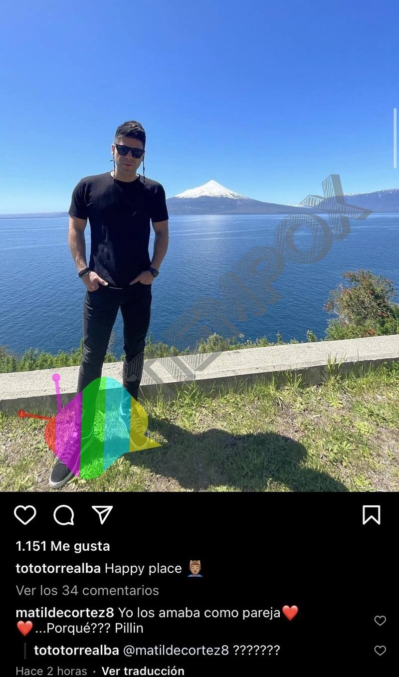 En el pie de foto, Toto Torrealba escribió: "Happy place (lugar feliz)" y rápidamente sus seguidores comenzaron a dedicarle elogios y, también, a lamentar su quiebre con Kel Calderón.