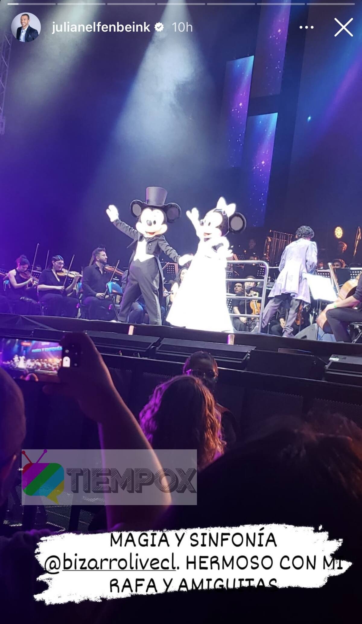 "Noche padre e hija con mi Rafaelita y sus amiguitas. Bello espectáculo musical sinfónico y lleno de magia", escribió Julián en su cuenta de Instagram. Además, en sus historias comentó: "Magia y Sinfonía, hermoso con mi Rafa y amiguitas", junto a imágenes de lo que fue el panorama.