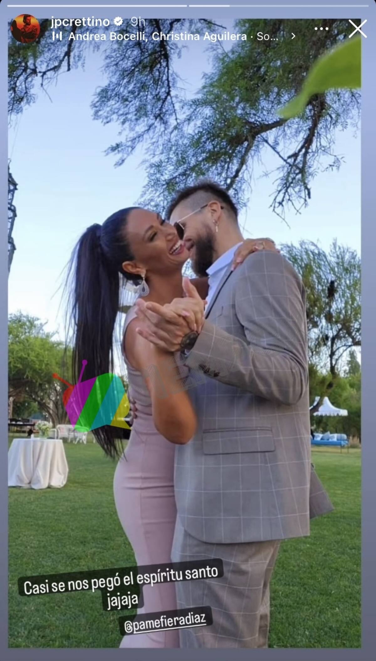 "Casi se nos pegó el espíritu santo jajaja", bromeó el comunicador de Chilevisión, mientras sonaba la canción "Somos Novios" de Andrea Bocelli y Christina Aguilera.