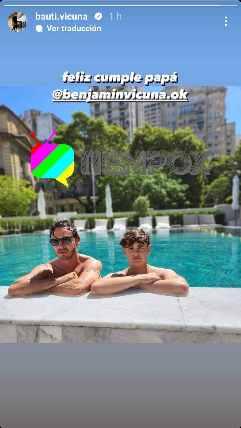 "Feliz cumple papá", escribió el influencer trasandino junto a una foto donde posa con el intérprete desde una piscina.