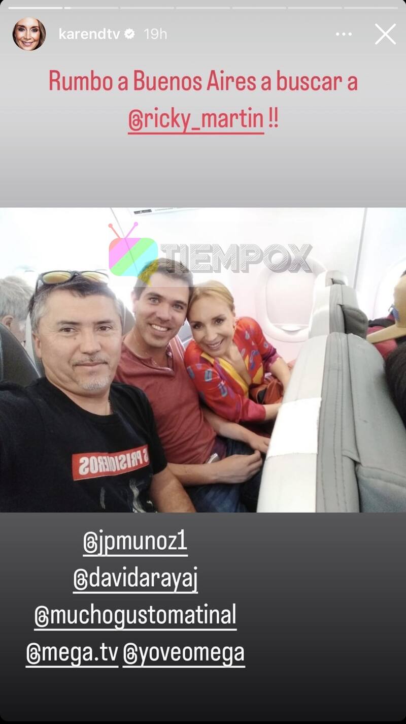Karen Doggenweiler viajó a Buenos Aires, Argentina para ir al concierto de Ricky Martin "Sinfónico", el cual tiene a más de 60 músicos de la Orquesta Sinfónica. La animadora publicó en sus redes sociales parte de lo que fue su viaje y además fotografías del concierto junto al equipo de Mucho Gusto.