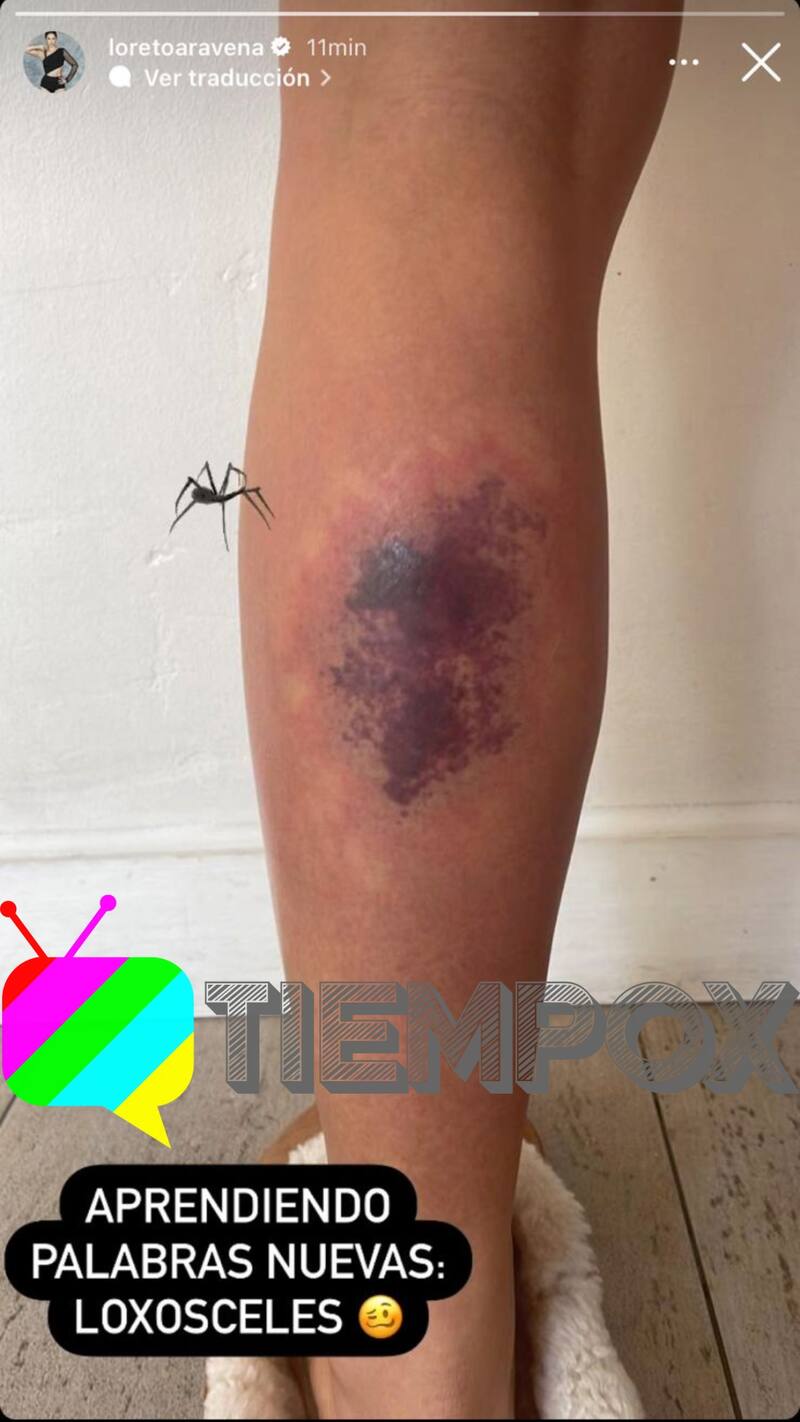 Ahora, ya pasados más de 7 días, Loreto Aravena publicó una foto donde se podía apreciar la marca que aún tiene en su extremidad y el gigantesco moretón que le produjo esta situación.