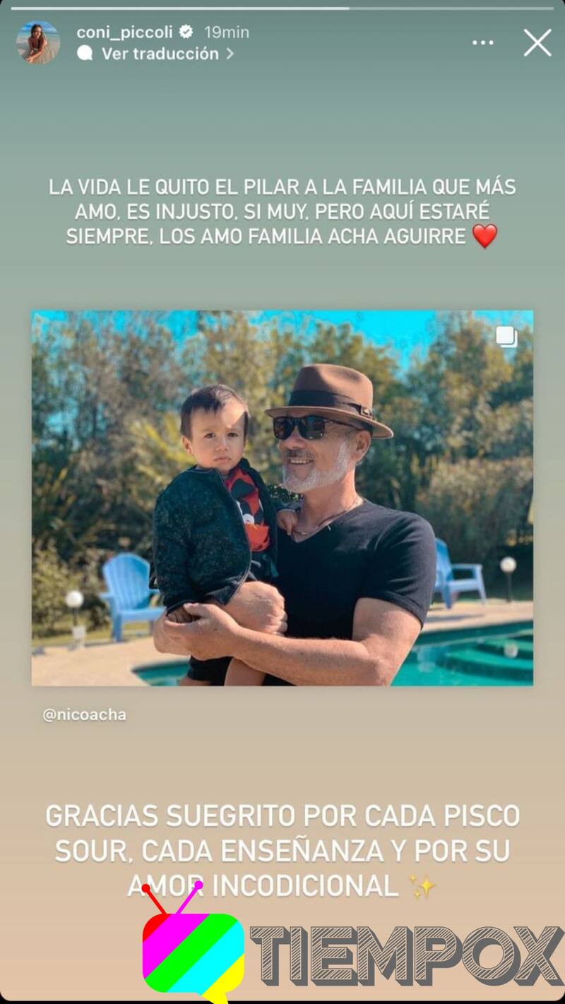 "La vida le quitó el pilar a la familia que más amo. Es injusto, sí muy, pero aquí estaré siempre, los amo familia Acha Aguirre. Gracias suegrito por cada pisco sour, cada enseñanza y por su amor incondicional", escribió Coni Piccoli.