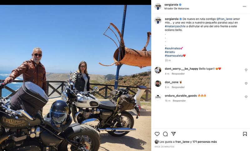 Fue en su cuenta de Instagram que Sergi Arola mostró la imagen que se tomaron para inmortalizar el momento, donde ambos posan al lado de sus respectivas motocicletas, luciendo chaquetas de cuero, lentes de sol, mientras sonríen a la cámara, apreciándose el mar de fondo.