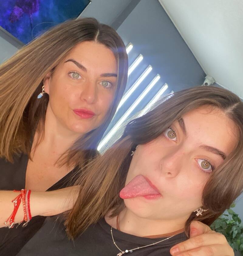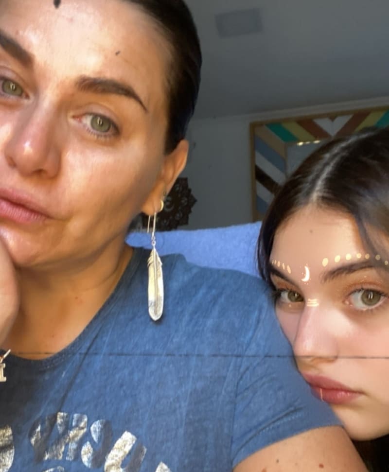 "Me encanta esta foto… Hoy la tengo puesta al lado de mi cama. Ese día estaba muy cansada, pero feliz (se nota en mi cara), pero mi hija me dijo que me veía linda con el peinado de Taylor Swift", escribió Íngrid Cruz al publicar un registro con Emilia Scheinffelt.