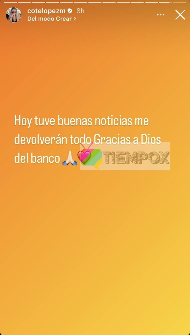 Después de todos los problemas que tuvo al respecto con este robo, la influencer logró encontrar una solución a su problema, ya que el banco le aseguró que le devolverían todo lo que le utilizaron. En su cuenta de Instagram, escribió: "Hoy tuve buenas noticias, me devolverán todo. Gracias a Dios, del banco".