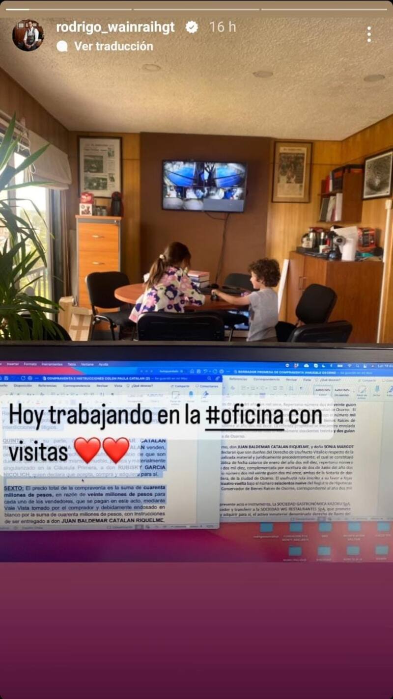 "Hoy trabajando en la oficina con visitas", escribió Rodrigo Wainraihgt en sus redes sociales, todo esto mientras dejó una foto del especial momento.