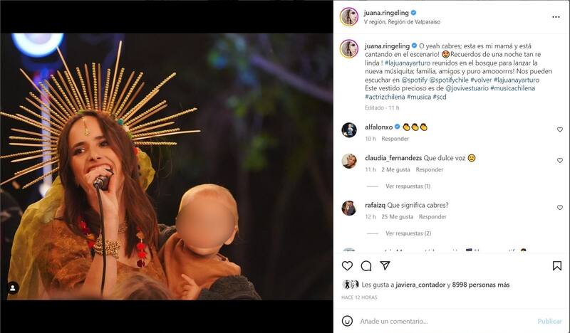 "¡Oh yeah! Esta es mi mamá y está cantando en el escenario. Recuerdos de una noche tan re linda. Reunidos en el bosque para lanzar la nueva musiquita; familia, amigos y puro amor", escribió en sus redes sociales Juanita Ringeling.