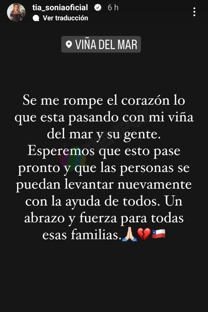 La mujer, que es oriunda de la ciudad de la región de Valparaíso, acudió a sus historias de Instagram para solidarizar con todos las víctimas del hecho.