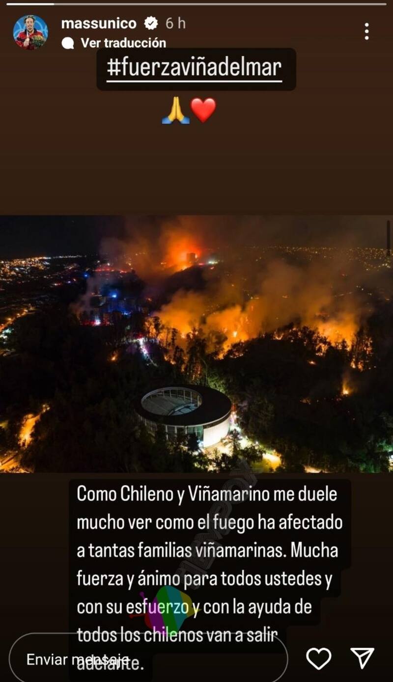 Obviamente que Nicolás Massú se sumó a las palabras de su madre. "Como chileno y viñamarino, me duele mucho ver cómo el fuego ha afectado a tantas familias. Mucha fuerza y ánimo para todos ustedes. Con su esfuerzo y de todos los chilenos van a salir adelante", señaló el extenista y actual entrenador del mismo deporte.