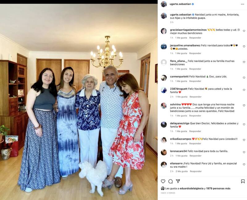 "Navidad junto a mi madre, Antonieta, sus hijas y la infaltable guapa", expresó el doctor Ugarte junto a la publicación.
