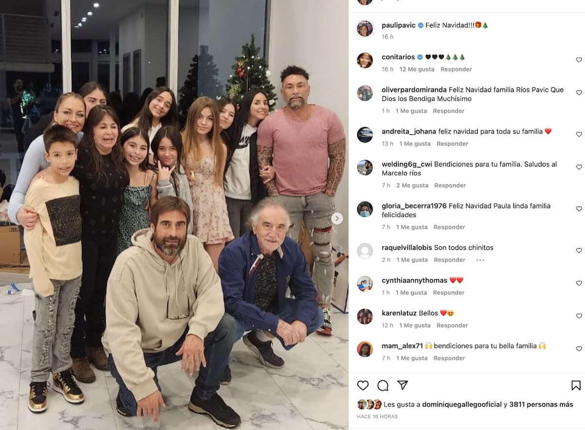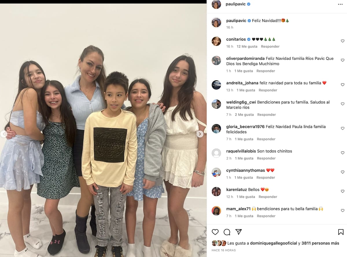 Una de las primeras en halagar la postal fue Constanza Ríos, la hija mayor de Marcelo Ríos, quien le comentó varios emojis de corazón y de arbolitos navideños. Otros usuarios de la red social le expresaron a Paula Pavic: "Linda familia, felicidades", "hermosa familia"; "preciosos todos"; "pero que grande y lindos están tus hijos, se pasaron".