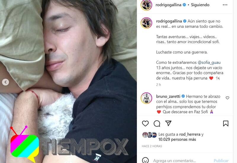 Bruno Zaretti, amigo del afectado y gran amante de los animales, le brindó su apoyo a Rodrigo Gallina. "Hermano, te abrazo con el alma. Sólo los que tenemos perrhijos comprendemos tu dolor. Que descanse en paz Sofi", redactó el brasileño.