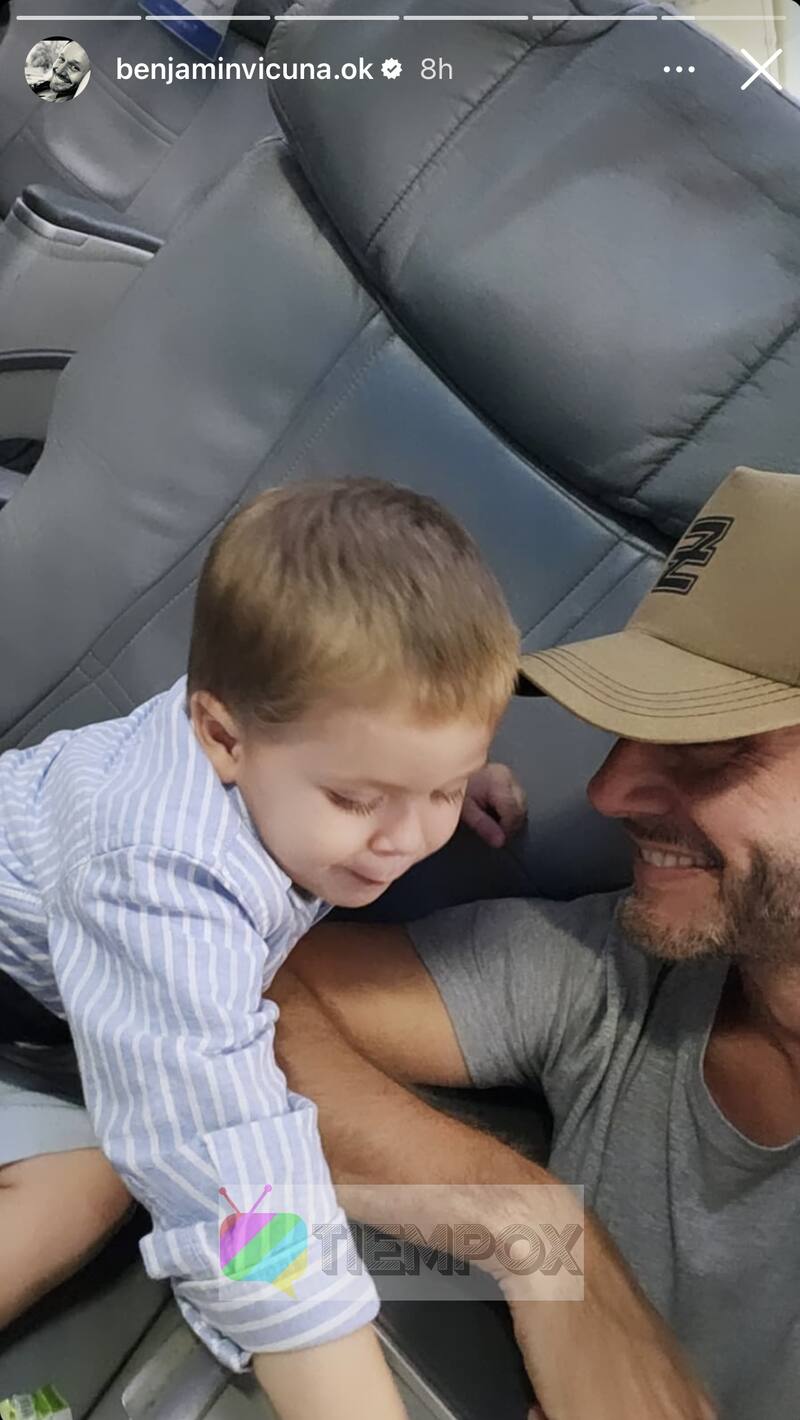 Benjamín Vicuña compartió una adorable fotografía junto a su hijo Amancio de dos años, el cual comparte con la China Suárez. A través de sus historias de Instagram, el actor publicó una postal donde aparece mirando de manera muy tierna a su retoño mientras viajaban.