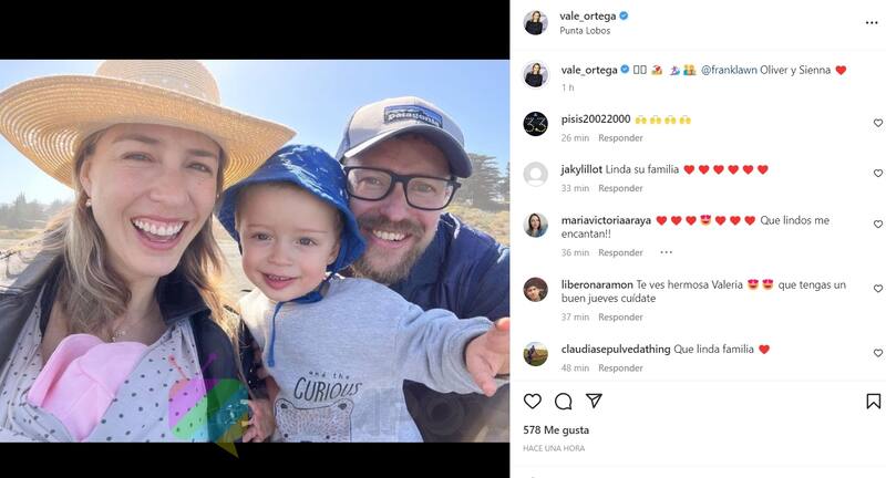 "Playa con Jonathan, Oliven y Sienna", expresó Vale Ortega, quien posó muy sonriente y con su hija menor en brazos.